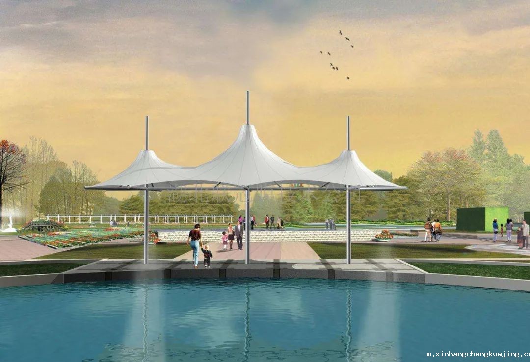 膜结构是具有一定的透光率,白天是可减少照明强度和时间的,是能很好地是节约能源的。同时夜间彩灯的透射形成的绚烂景观也能达到很好的广告宣传效益。膜结构修建的首要材料即是膜材,它是直接会影响到功能和寿命,在挑选时是显得非常重要的。