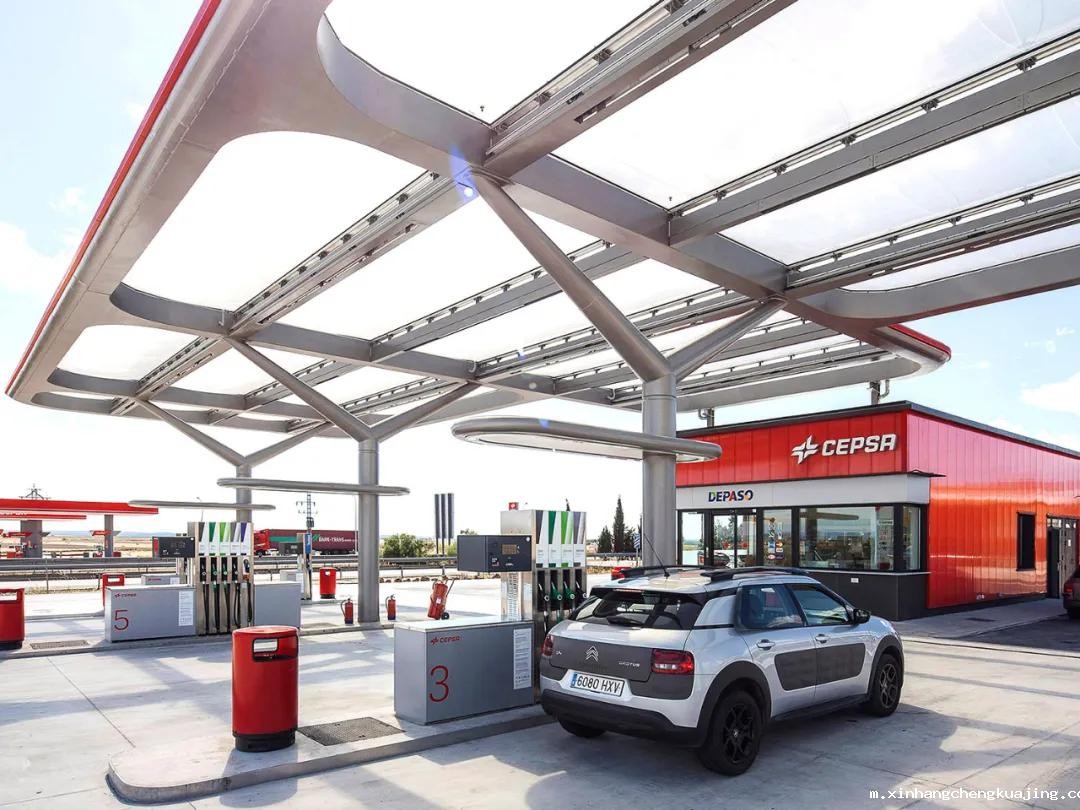 加油站导视系统的灵感来自于Cepsa的徽标形状和角度
