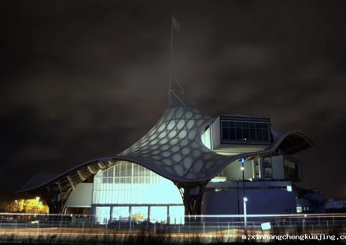 骨架膜是以刚性构件作为骨架,以膜材作为覆盖材料,主要由刚性骨架承受外荷载,由于膜材的透光性和张力感,使得骨架膜结构的大空间更加明亮、开放、富有力度感