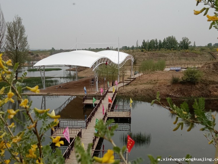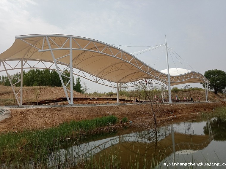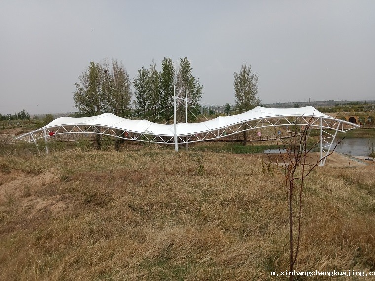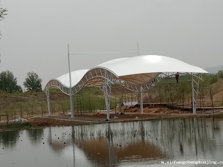 【详细内容】:映山红康养小镇膜结构,面积500平米,膜材选用PVDF建筑膜材,结构形式采用骨架支撑式,整体美观,与建筑协调,美观大方.