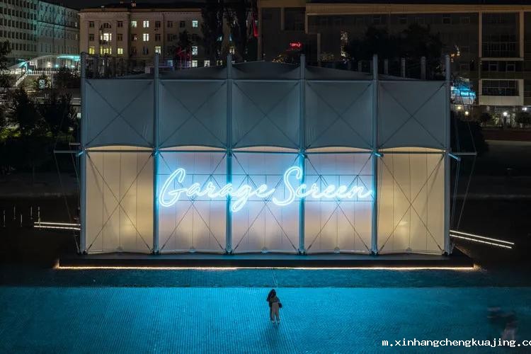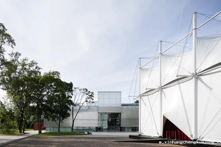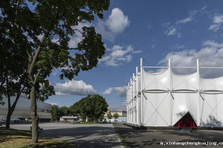 该阶段方案是一个白色的张拉膜结构,内部有红色的墙包围着大屏幕。车库影院负责人指出,新馆“并不能立即被认作是一个电影院”,他希望目前的方案能够为电影体验和存在模式的重塑让路。