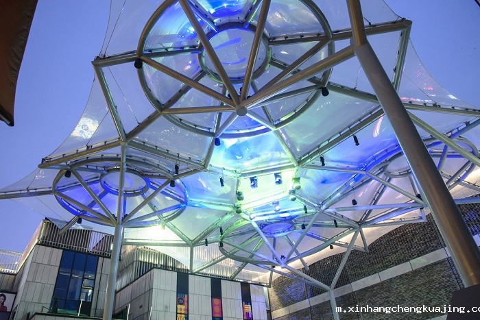 膜结构屋面的采光效果如何?越来越多人选择膜结构屋面是因为膜结构膜材的透光性常被认为是最有价值的特性。白天膜材的光谱透射比(一般为10%~15%)提供了自然的漫射光,从而节约了大量能源。膜结构屋面膜材的选取、结构张拉形状以及细部构造都对视觉环境有重要影响。